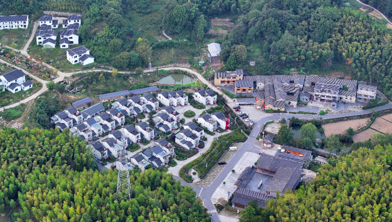 2024年9月28日,安徽省六安市金寨县花石乡大湾村,一栋栋白墙灰瓦的房屋错落有致地分布。新华网发 (田凯平 摄)