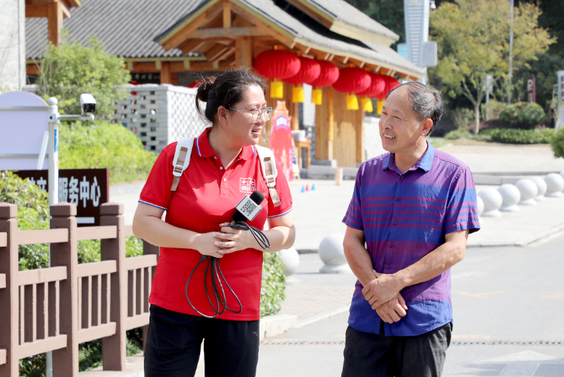 2024年9月28日,安徽省六安市金寨县花石乡大湾村村民汪达海接受记者采访,分享大湾村喜人变化和切身感受。新华网发 (田凯平 摄)