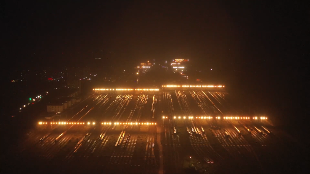 您见过零点后的春运铁路货运站吗?夜空下重庆地区最大的中欧班列编组站——兴隆场编组站会是什么样,轨道间闪烁的一束光会告诉您答案。